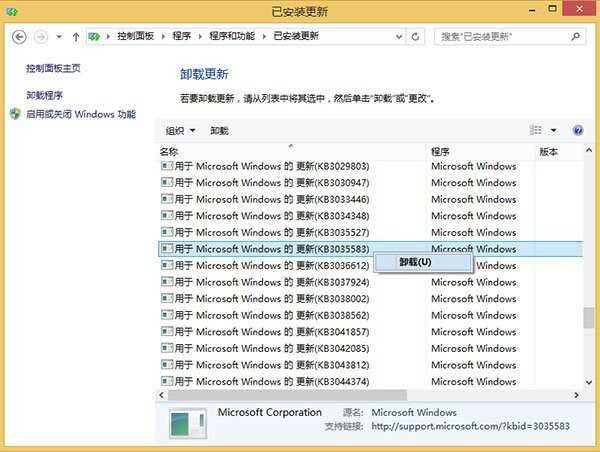 方法一:卸载《获取Windows10》KB3035583更新补丁