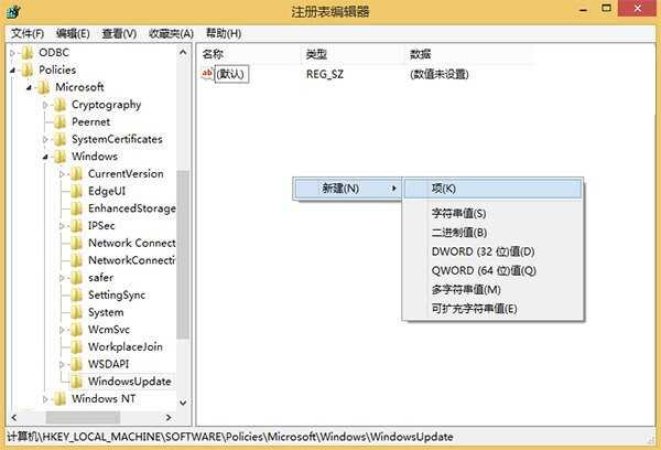 注意:若没有WindowsUpdate项,可在点击上图中Windows目录后,在右侧空白处手动点击右键新建。
