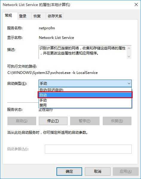 5、在“启动类型”中选择“自动”,然后点击“确定”,如下图——