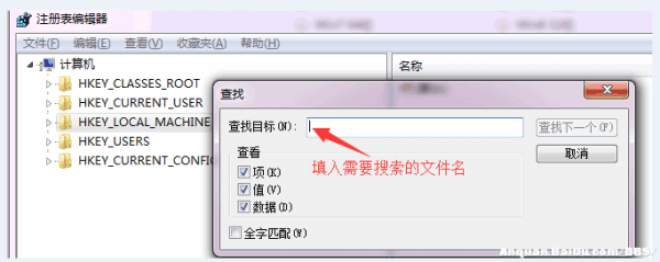 3、删除对应的文件后请搜索相应的文件注册表看是否存在相应的注册表,如果存在删除即可。具体查看方面见下图: