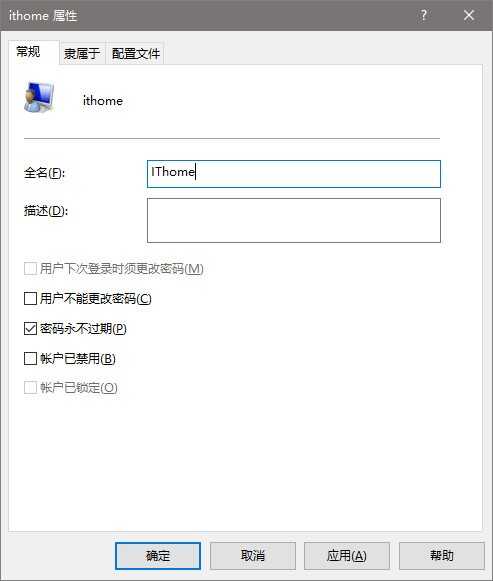 3、“名称”一栏显示的是该账户登录名,也就是标准用户名;“全名”是显示名称,方便用户辨认。