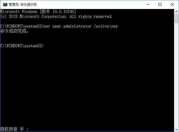 ② 执行 net user administrator /active:yes (如下图)