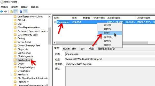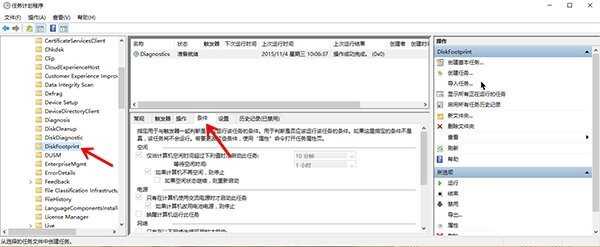 2.在计划任务程序中左侧导航栏内依次进入>Microsoft> Windows> Diskfootprint,在右侧就会看到名为Diagnostics的任务了。