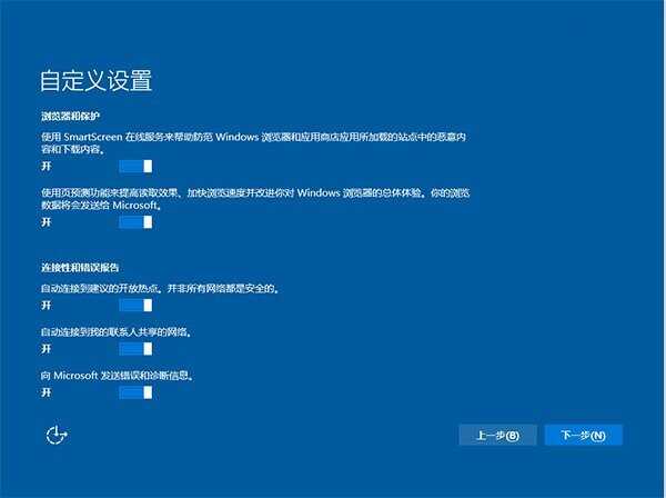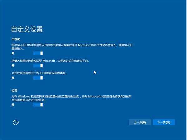 ▲你可以在上述选项中选择可向微软发送的数据信息。但要注意,如果关闭“位置”信息,则当前设备无法定位(平板电脑等移动设备慎用)。点击“下一步”后完成这部分设置。