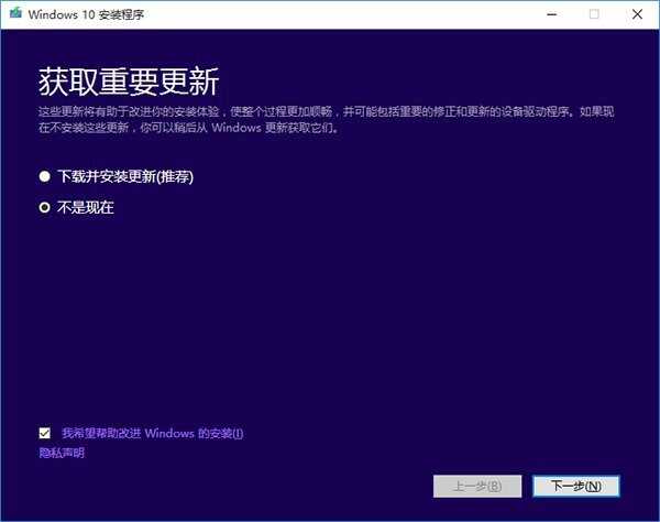 ▲这里可随意选择,如果时间紧迫可以选择完成Win10安装之后再更新。点击“下一步”继续