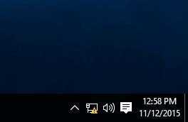与Win7/Win8.1等系统一样,Win10也会自动监测网络的可用性,并且在连接网线但网络不可用的情况下会在右下角通知区域中的网络图标上显示一个黄色的感叹号。如下图所示: