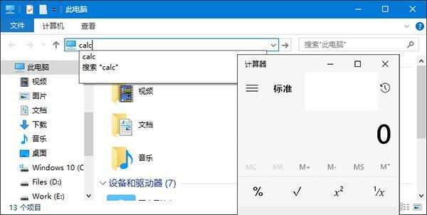 比方说,如果你需要打开计算器,那么直接在资源管理器窗口中输入calc回车即可,当然,你也可以直接按Windows按键然后输入calc回车。哪种操作方便,看具体情况。