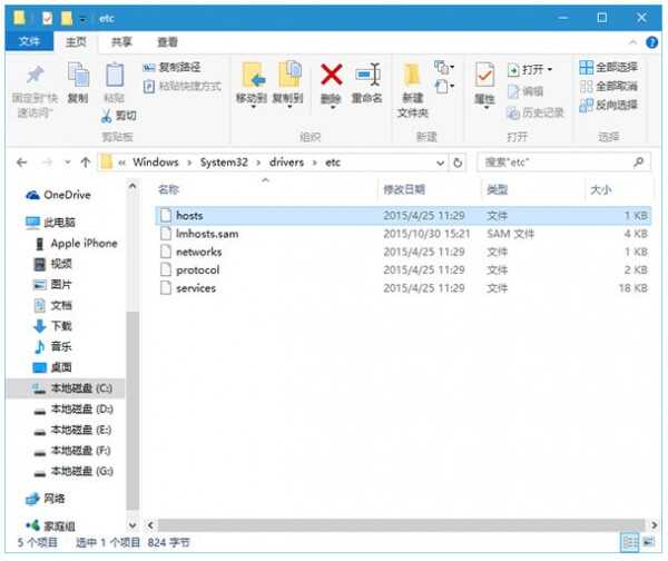 1、进入C:\Windows\System32\drivers\etc,如下图——