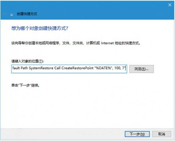 cmd.exe /k "Wmic.exe /Namespace:\\root\default Path SystemRestore Call CreateRestorePoint "%DATE%", 100, 7"