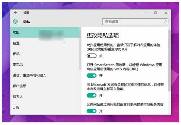 经过以上几个设置,在Windows10中你就不会接收到来自微软的个性化广告了。