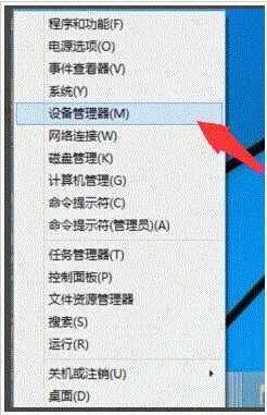 1、在开始菜单的那个图标上点击右键,然后再点设备管理器;
