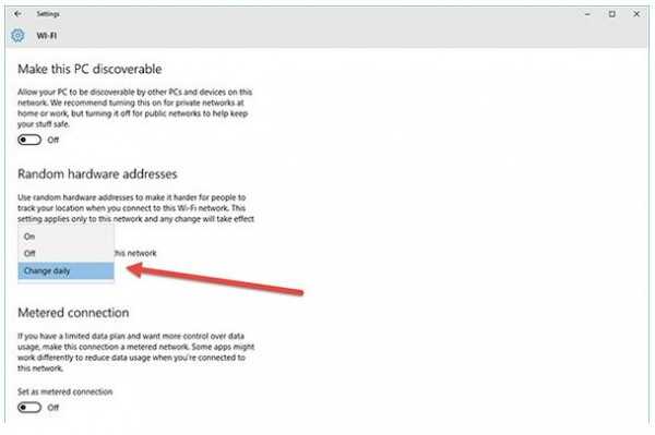 3、打开 “针对此网络使用随机硬件地址”即可。你还可以设置为每天自动更改Mac地址,如下图所示: