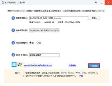- 使用软媒魔方的“U盘启动”工具(点击下载)制作Win10安装U盘,然后用U盘启动进行安装,选择好U盘和Win10镜像文件后,点击“开始制作”.