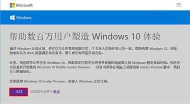 点击“入门”后,当前已登录的微软账号将自动加入计划;如果未登录账号,则会跳转到登录页面,登录成功后将自动加入