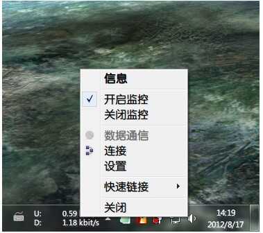 这个时候状态栏就出现了网速显示,但还有些人会发现,网速不管怎样,一直都是显示的0。这是因为你选择的网卡不对,右键单击网速显示处,然后选择“设置”。