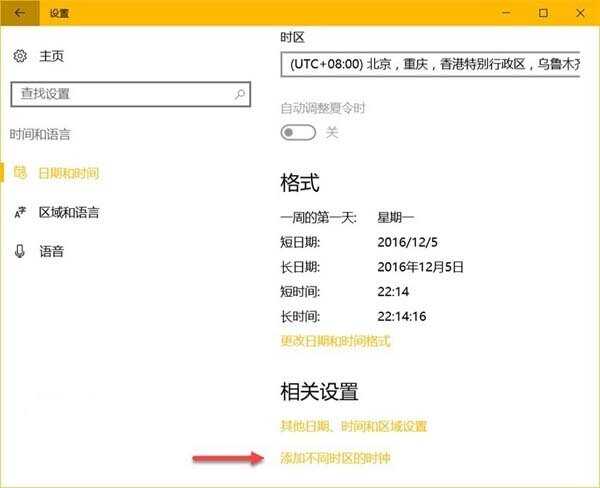 Win10系统允许用户配置最多3个不同的时钟:除显示本地时间的主时钟外,还可以另外配置2个不同时区的时钟。当你单击或将鼠标悬停在任务栏日期、时间上时,便可以立即看到这3个不同时间。