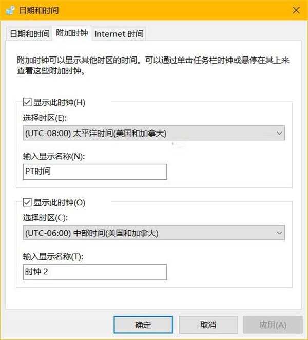 3.在「附加时钟」中勾选「显示此时钟」再选择需要的时区即可,为虽然只能附加2个时钟,但还是可以「输入显示名称」以便区分。
