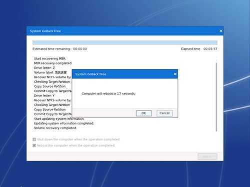 10. 在还原过程中,由于截图中有勾选“Reboot the computer when the operation completed”因此在还原完成以后会自动重新启动。