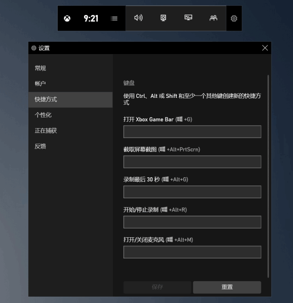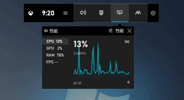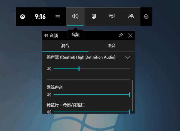 2.目前Xbox小组件支持的功能有音频调节,捕获界面,性能实时查看等