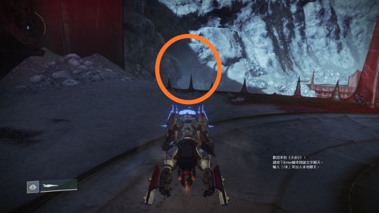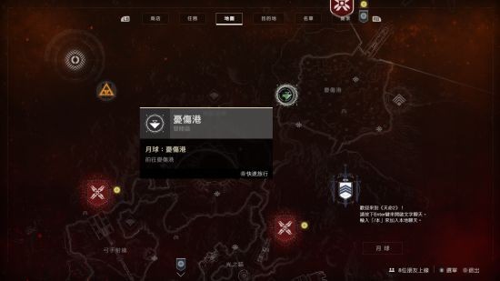 首先来到月球,传送忧伤港口,往右侧画圈方向行进,通过红色桥梁后继续深入,在出口贴着左侧走,往箭头指示洞口进入,可以看到一个大型传送门。