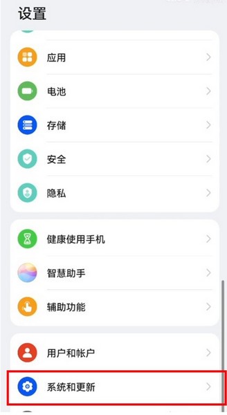 2、这时用户们需要点开手机设置,找到系统和更新。
