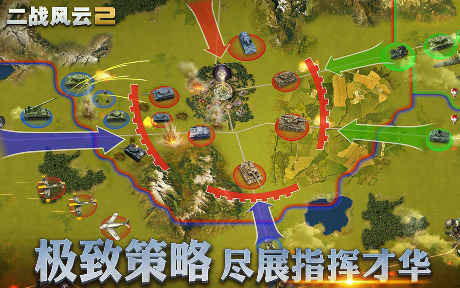 《二战风云2》是一款独创开局制玩法,每场可容纳数百名玩家、超过10万部队单位进行即时混战的全3D真即时战争策略手游。游戏中包含了各种战争元素,包括地缘,地形,交通,补给,外交等等,力求模拟出一个真实的环境,让玩家可以配合战斗。