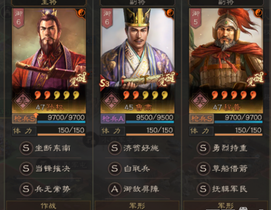 孙权(枪兵宝)+鲁肃+程普。