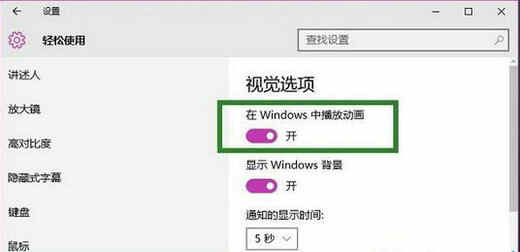有的win10用户反映自己在截完图之后系统不弹出保存消息,这种情况要怎么办呢?你需要先确保你的视觉选项中的“在Windows中播放动态”按钮是否打开,如果打开了就打开高