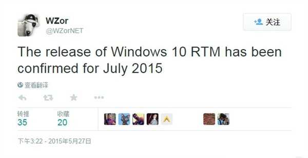 Win10上市在即,Win10正式版什么时候发布成了网友关注的焦点。今日终于有消息确认,俄罗斯爆料大神WZor在Twitter上爆料,Win10正式版已经确定将于7月份发布。RTM版(Release to