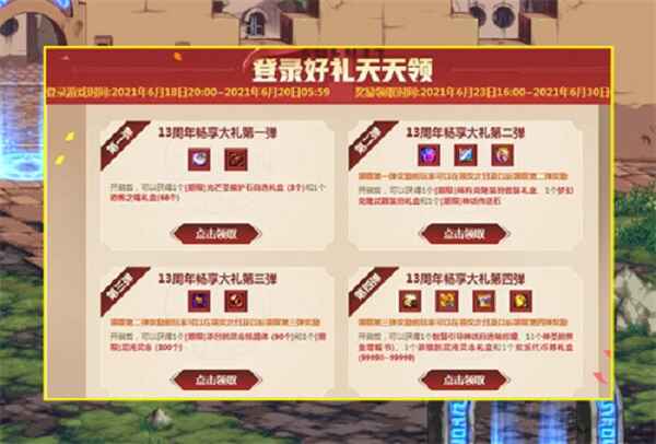 dnf13周年4弹奖励怎么领呢?dnf即将迎来13周年庆版本了,2021年本次的周年庆的登录奖励跟往年的一样一共有4弹,那么这第4弹怎么领呢?下面一起来看看吧!dnf4弹奖励需要什么时