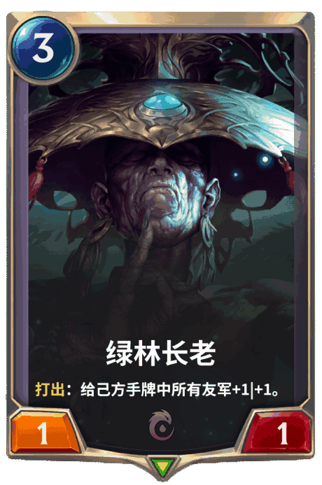 lor中,绿林长老是艾欧尼亚的单位卡,属于普通绿卡,那么游戏中绿林长老怎么样,效果如何,属性如何,下面一起来看看吧。
