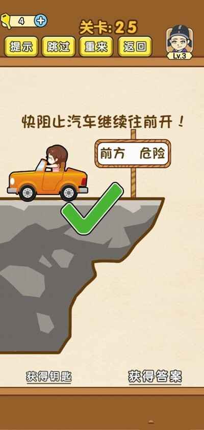 全民烧脑是一款奇特的有着多个关卡的休闲益智解谜手游,那么其中第25关快阻止汽车继续往前开答案是什么,下面一起来看看吧。