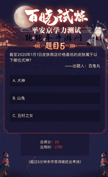 阴阳师皮肤商店价格最低的皮肤属于以下哪位式神是百晓试炼平安京学力测试玩法,玩家们参与阴阳师知识问答即可获取丰厚奖励喔,那么截至2020年1月1日皮肤商店价格最低的皮肤属