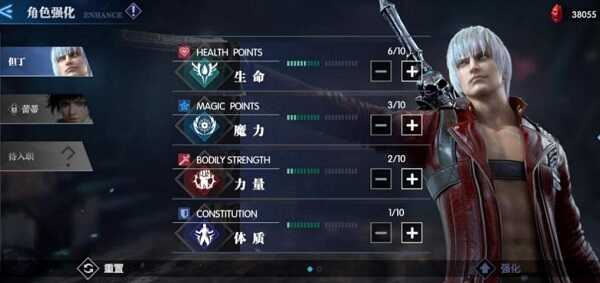 鬼泣巅峰之战但丁属性怎么加点呢?在游戏中角色有攻击,防御,魔力与体质4个属性,玩家可以通过强化加点来提升其某一方面的能力,下面为大家介绍一下但丁的加点方案。1、鬼泣巅