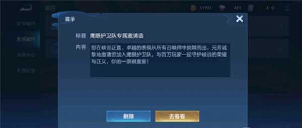 王者荣耀鹰眼护卫队邮件删除了怎么办呢?官方向全服5%满足条件的召唤师发放的邀请邮件,但是不少召唤师回忆起自己当时不小心将邮件删了。那么没有邮件还能不能加入鹰眼护