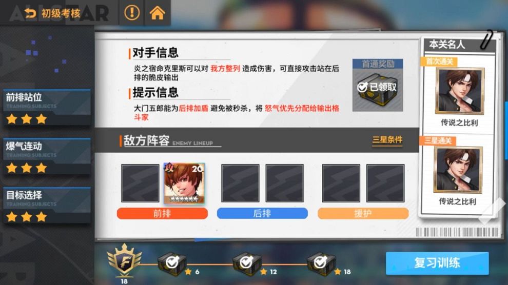 全明星激斗中级考核攻略?全明星激斗是一款玩法很有创新回合制的卡牌游戏,阵容搭配与玩法思路才是这款游戏通关的关键,下面小编就给大家带来全明星激斗中级考核攻略。