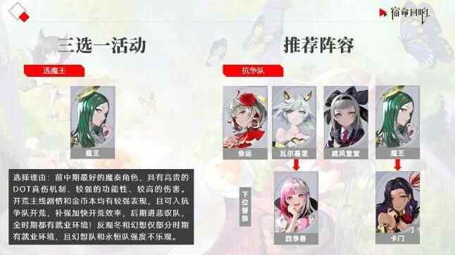宿命回响三选一奏者活动已经开始了,那么玩家们怎么样从三选一活动之中选择最强的角色呢?这是玩家们想知道的,下面就跟大西洋小编小编一起来看看具体的选择推荐,希望对你有所帮助