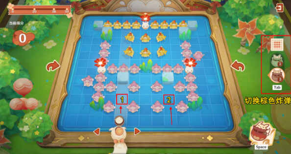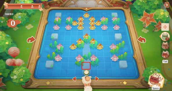 原神嘟嘟可轰轰奇遇记第三天我们先要使用薄荷果冻蹦蹦向下的框内发射,并炸开水草,接下来就需要我们手动引爆了,只要把水草炸开再换到左边就可以了,具体的操作流程我们就来看看下