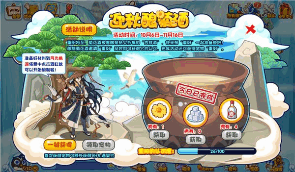 洛克王国迎秋酿菊酒活动已经为我们开启了,本周的活动我们需要完成菊花酒的酿制过程,想要完成今天的酿酒活动我们先要将准备材料备好,然后根据大西洋小编小编的提示一步步的去完
