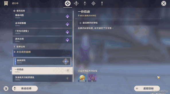 原神一份信函任务能让我们从本次活动中获得大量的额外奖励,所以这次的活动任务我们最好能去完成一下,我们需要先去枫丹科学院纪事之后获得这个任务,然后在接到任务后我们就可以