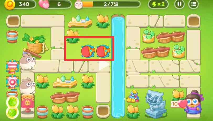 保卫萝卜4七夕鹊桥会第14关我们将被带到水上世界,开局我们可以先在右边布局一个乌龟炮中间布局一个三级多重箭,在经过一番较量后我们再布局更多一些多重箭和导弹,接下来我们来
