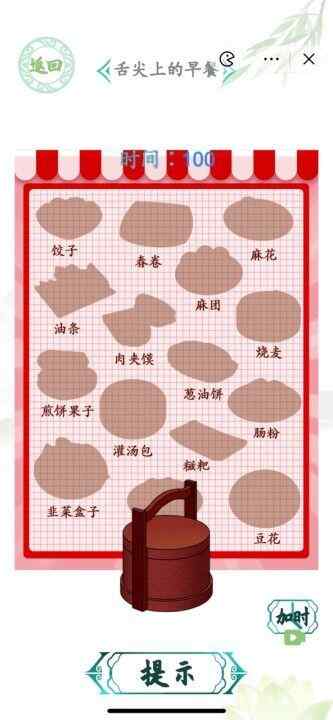 汉字找茬王舌尖上的早餐需要我们将图中阴影部分的美食全部猜出来,图中十几道菜都有什么呢?这里除了大家熟悉的饺子、春卷、麻花还有更多大家喜欢的早餐,如果你还没有全部猜出来