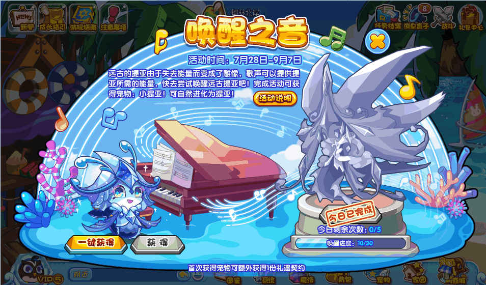 洛克王国唤醒之音活动需要10位勇士齐心协力唤醒封印中的神兽,获得珍贵奖励。玩家需在挑战过程中解决各种难题,提升实力和技能,与玩家一起加入这场神奇的冒险之旅!