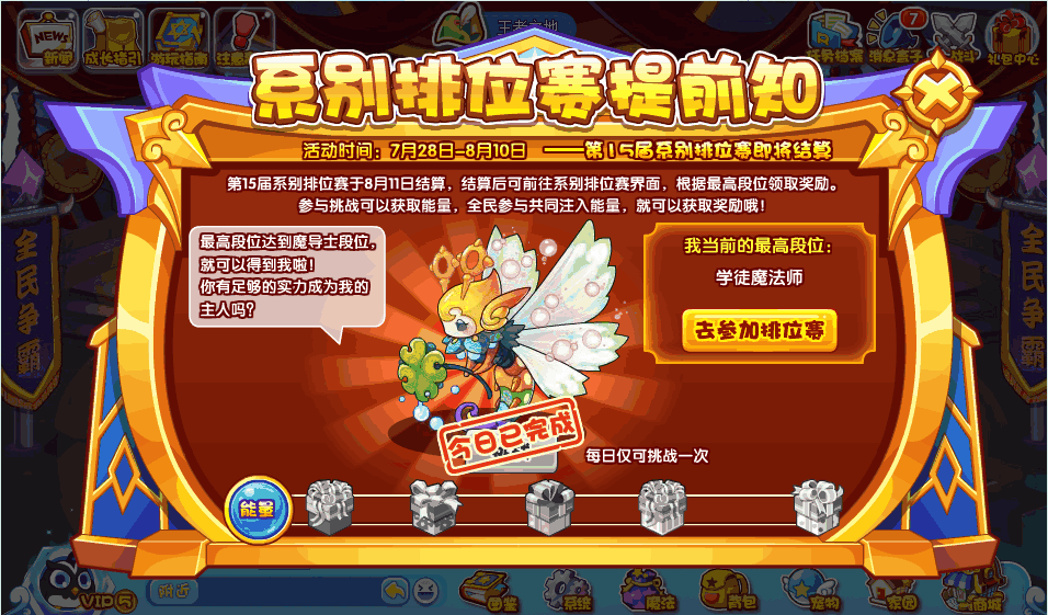 在洛克王国的系别排位赛提前知活动之中,玩家可以提前一天知道对手的信息,包括战斗实力和阵容。那么具体的怎么通关呢,下面就跟小编一起详细的了解一下吧!