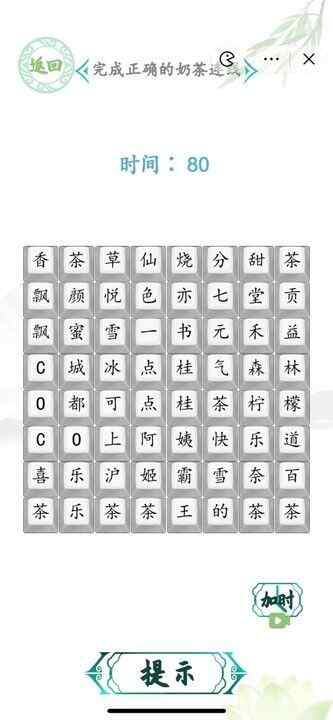 汉字找茬王完成正确的奶茶连线特别应景,这里有各种奶茶名,只有平时经常接触的人才能在最短的时间内完成挑战,这次我们要连成每一句需要用到更多的时间,主要是每一句都特别短,