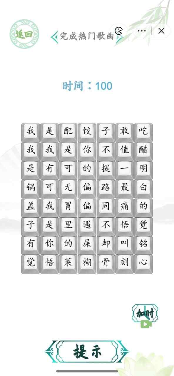汉字找茬王觉悟需要我们将图中的歌曲快速完成连线任务,只有将每句都按正确的顺序连起来你才能完成这一关的挑战,准备好了吗?我们就来看看最新的觉悟连线歌曲图吧,有了它你就能更