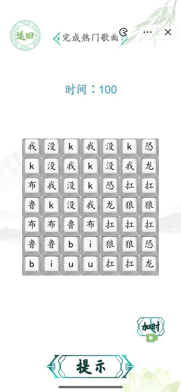 汉字找茬王小丸子扛狼需要我们在最短的时间内将图中的文字连成一首完整的曲子,如果你对这首歌还不是很清楚的话可以去看看我们是如何一句句完成连线的吧,在得到歌词后你可以发