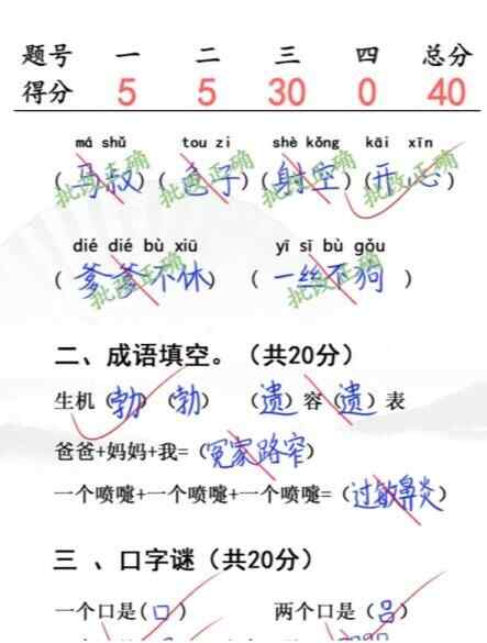 汉字找茬王小学生试卷4需要我们正确的完成小学生的判卷,哪里错误哪里正确需要我们心中有数,这张试卷一共有4大类,从拼音开始到成语填空我们必须给出最专业准确的判断,快来看看我