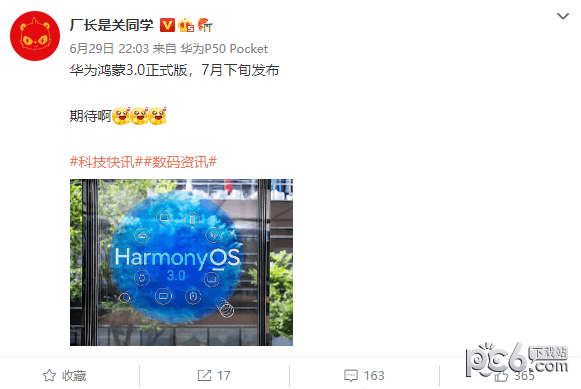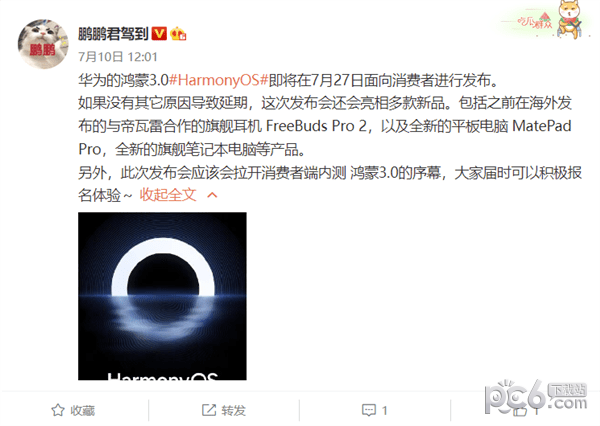 最近一段时间,大家对于鸿蒙3.0系统的发布时间比较关注,有消息称华为将会在7月27日正式面向消费者推出这款全新大迭代系统。今日新浪博主@鹏鹏君驾到 再一次确认了这个消息。根