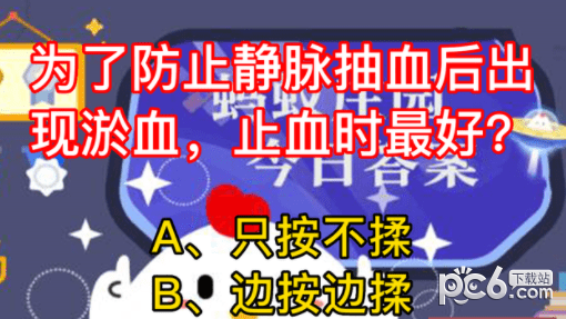 2022蚂蚁庄园7月13日支付宝蚂蚁庄园每日一题庄园小课堂今日问题:为了防止静脉抽血后出现淤血,止血时最好边按边揉吗?关于这方面的知识内容很多人都不是太了解,下面就为大家